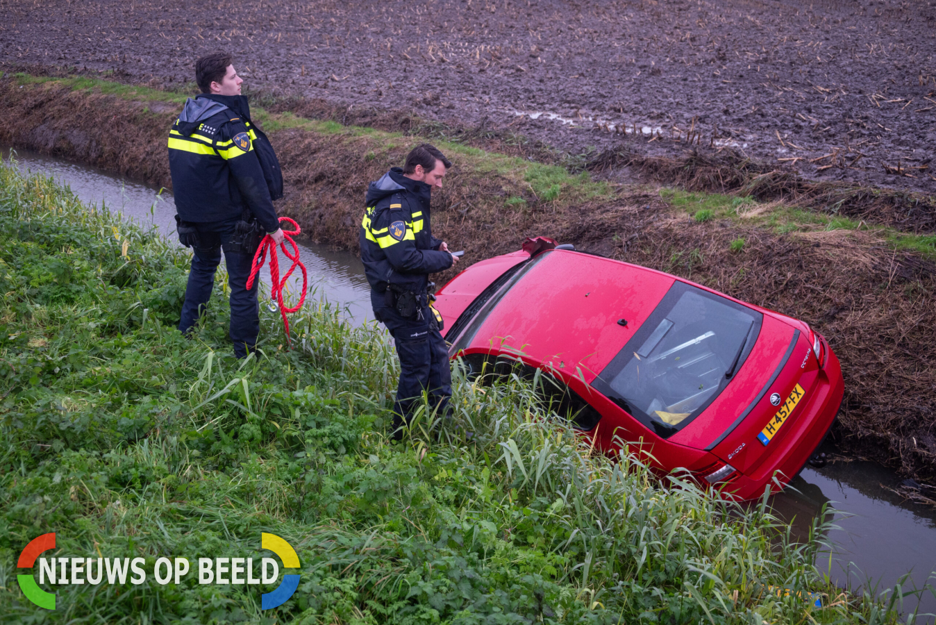 Auto in sloot aangetroffen, zonder eigenaar erbij Biertsedijk Oost Simonshaven