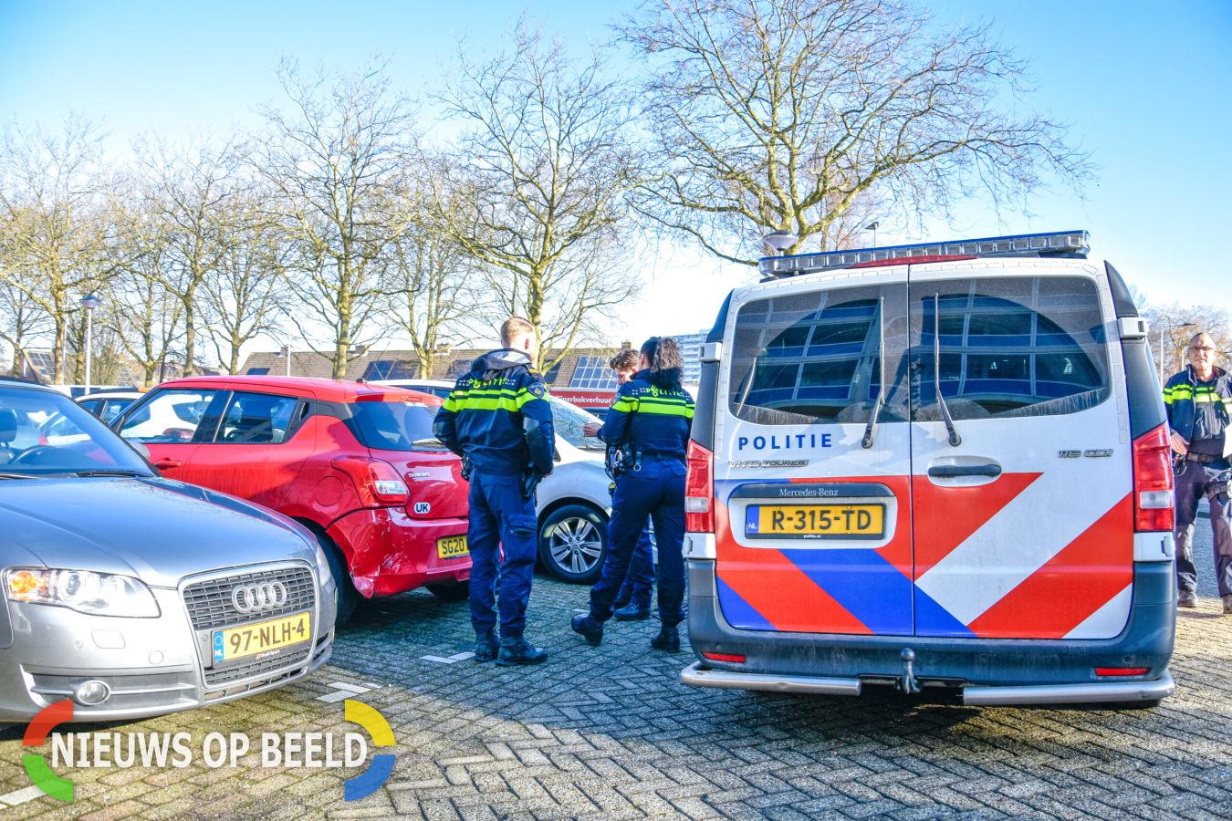 Drie voertuigen kwamen in botsing, als gevolg van deze botsing liep één voertuig flinke schade op aan de achterzijde. De achterop gereden auto zou nergens te bekennen zijn. Twee van de drie bestuurders zijn op de parkeerplaats aan de Oberonweg gestopt om de schade formulieren in te vullen.