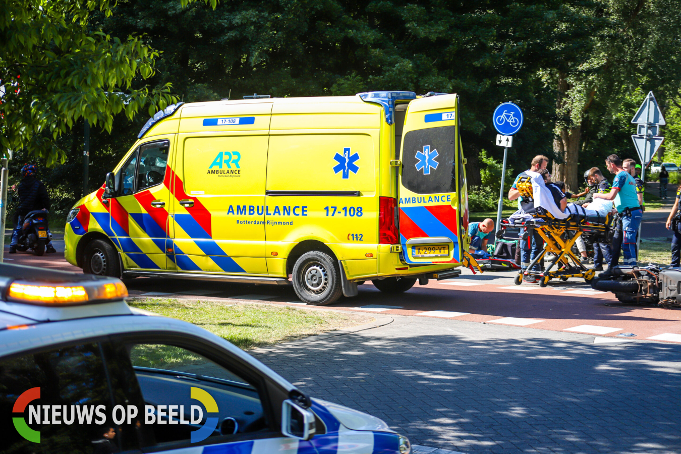 Op de Parkweg in Schiedam is zaterdagmiddag een scooterrijder gewond geraakt na een aanrijding met een auto. De scooterrijder reed met zijn scooter over het fietspad toen hij in de flank van de auto reed.