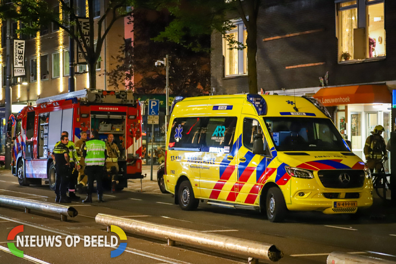 Bij de brand kwam flink wat rook vrij wat richting de woonruimte trok. De politie heeft de volledige West-Kruiskade volledig afgesloten. Het tramverkeer is niet gestremd.
