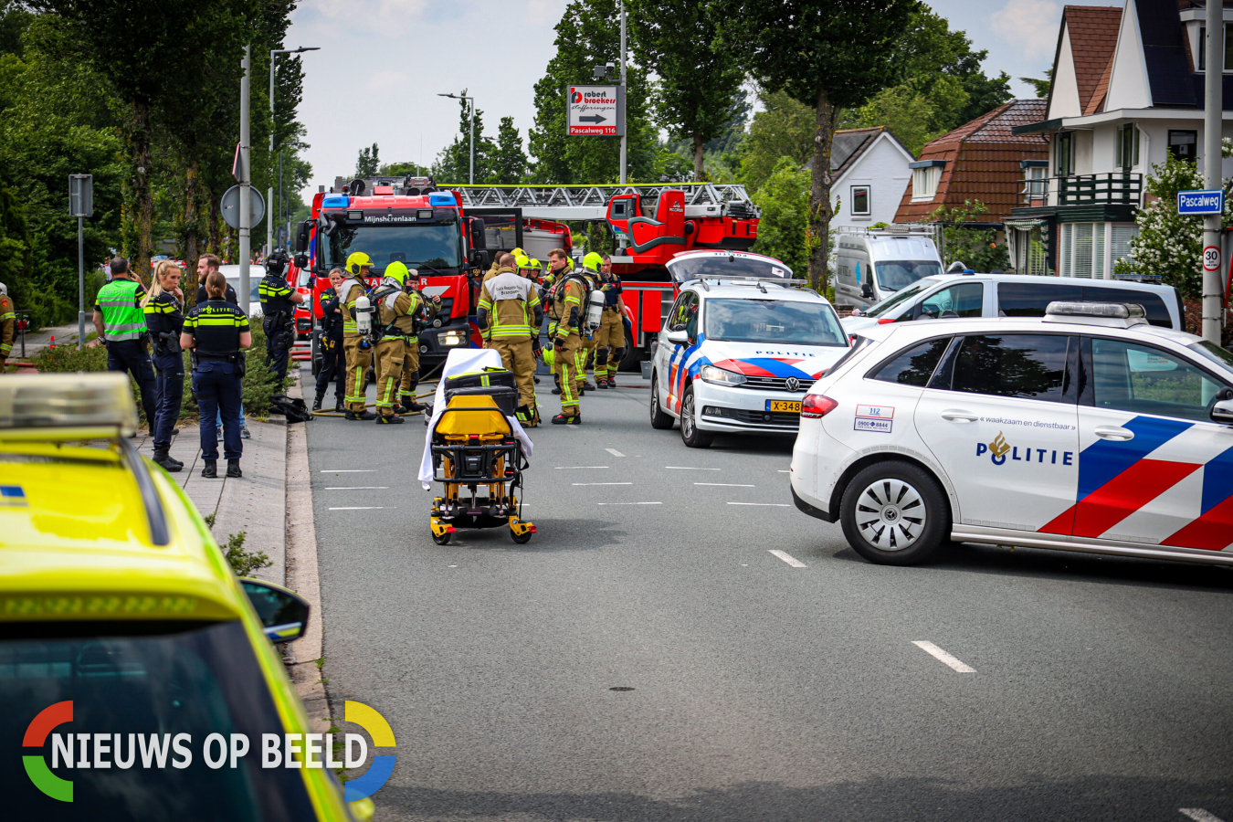 De straat werd in beide richtingen afgesloten. De brandweer hield de situatie vanuit de lucht in de gaten met een drone.