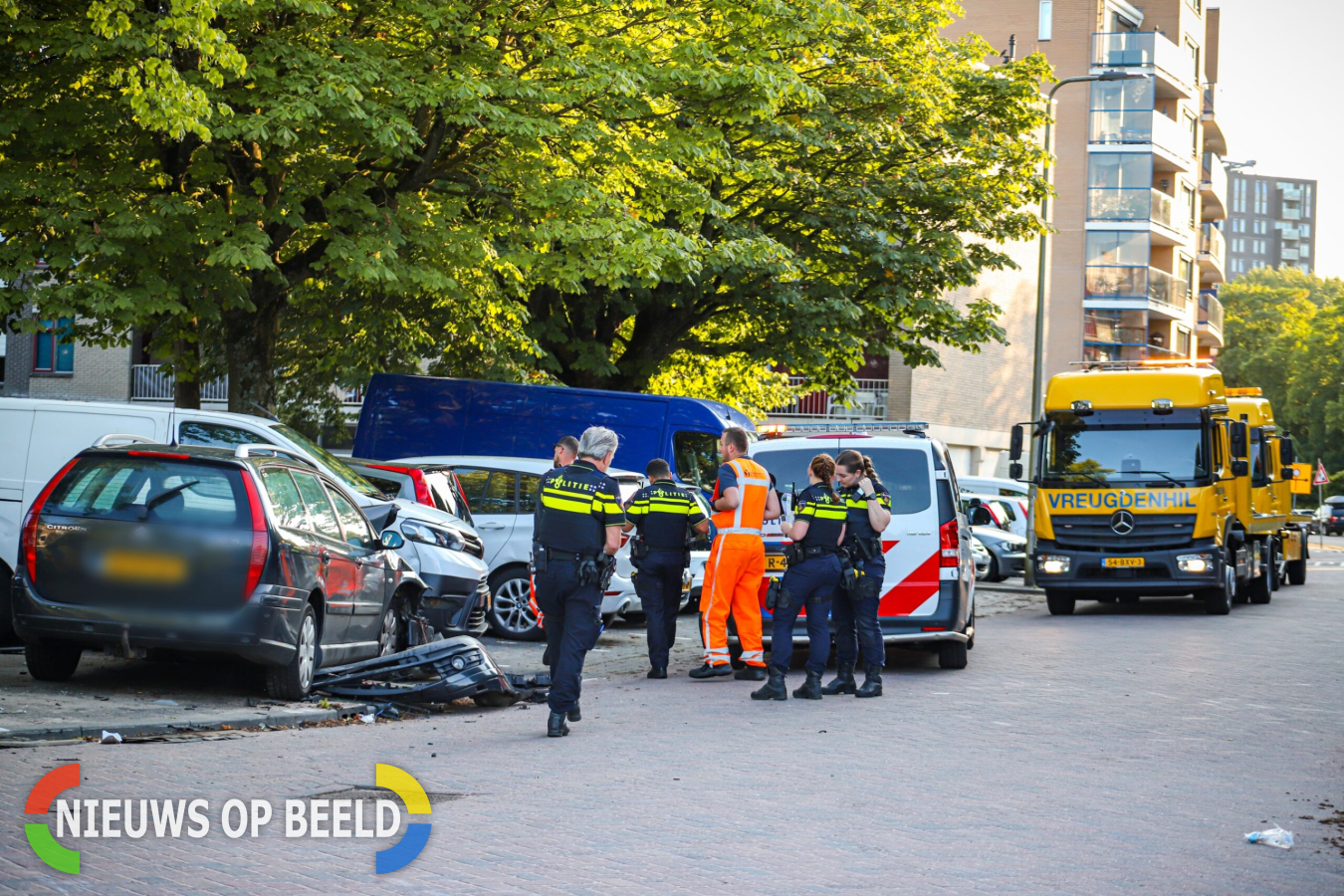 Op de Jonkheer de Savornin Lohmanstraat in Ridderkerk zijn dinsdagavond vier voertuigen betrokken geraakt bij een flinke aanrijding. Het begon met een botsing tussen twee auto’s. Eén daarvan knalde tegen een boom, de ander reed daarna tegen een bestelbusje en nog een auto.