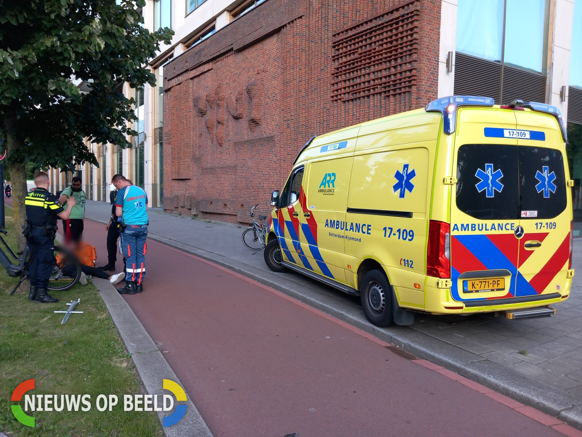 Maandagavond is een bezorger met zijn fiets hard ten val gekomen bij een eenzijdig ongeval op de Diergaardesingel in Rotterdam. Hoe het ongeluk precies kon gebeuren, is nog niet bekend.