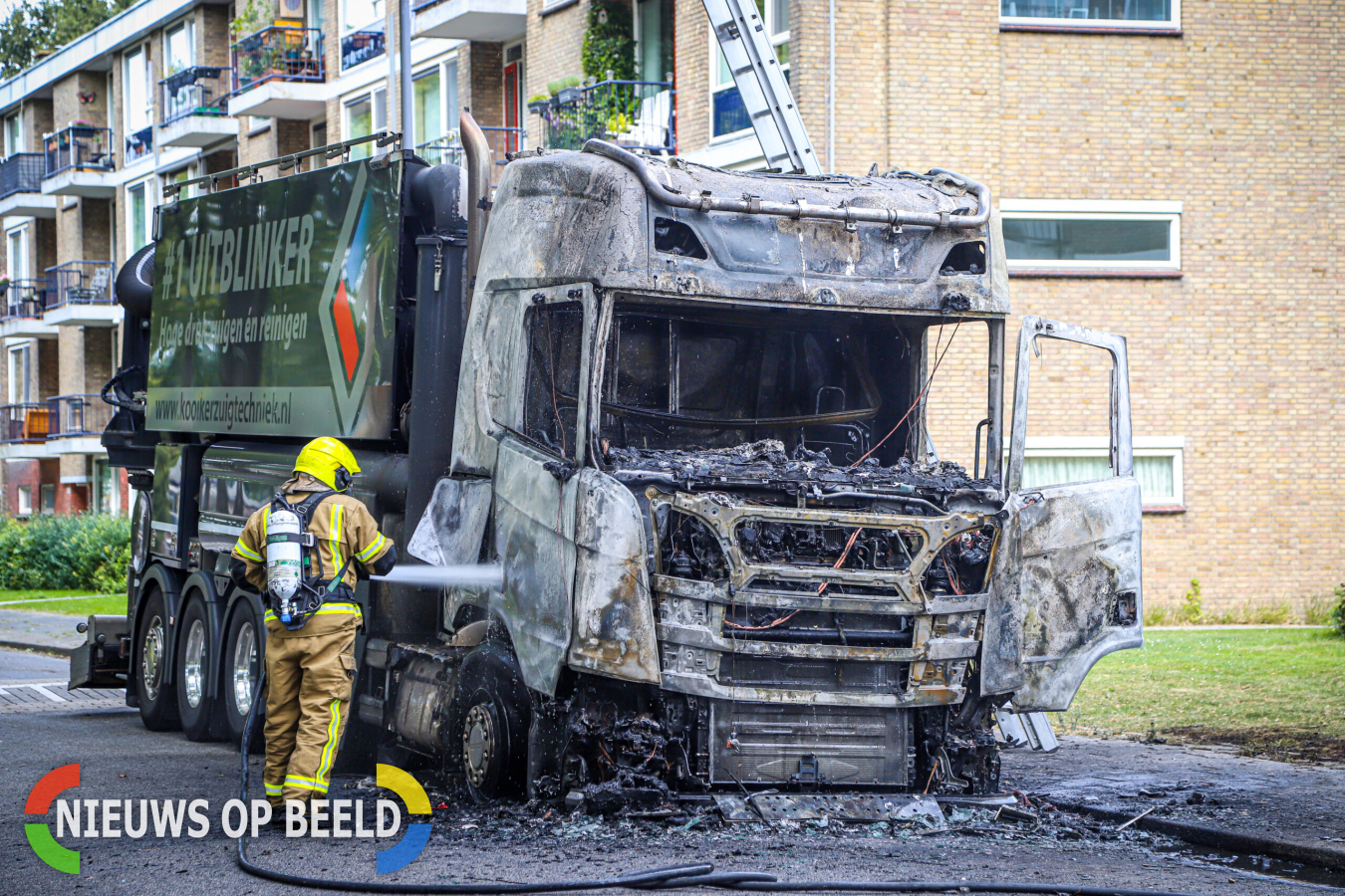Toen de brandweer ter plaatse kwam, sloegen de vlammen al uit de cabine. De vrachtwagen is zwaar beschadigd geraakt. De bestuurder bleef ongedeerd.