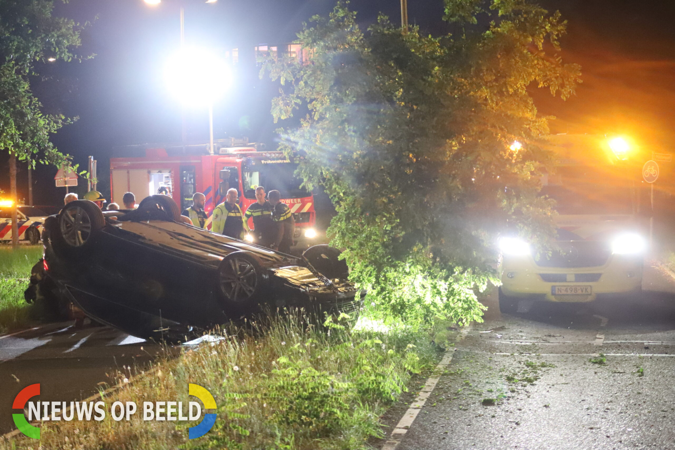 Auto slaat over de kop na botsing met boom Van der...